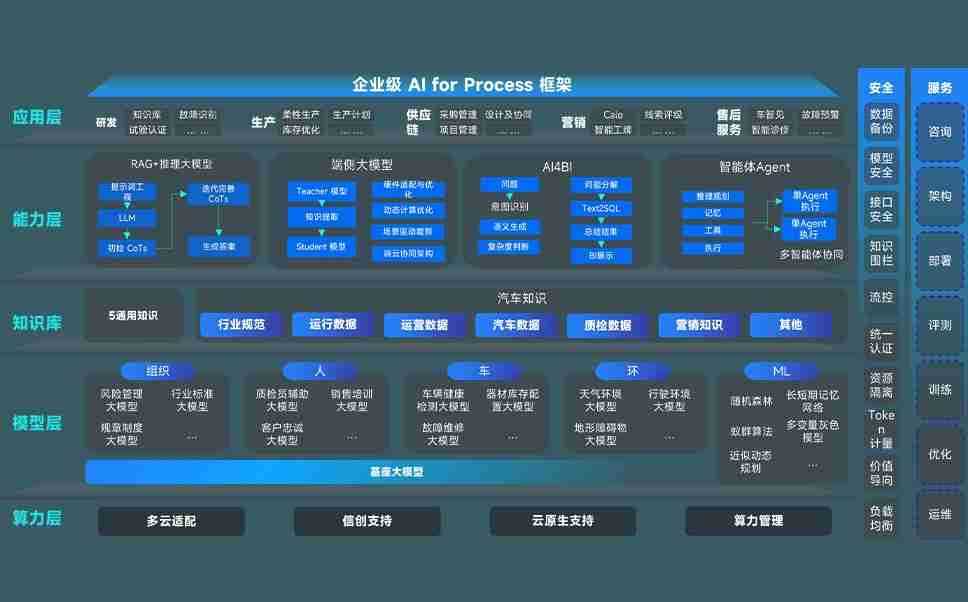 九鼎国际问学智车解决方案是一套基于AI技术的汽车行业智能化系统,,,覆盖从底层算力到顶层AI应用的全栈方案。。。方案由算力层、、、模型层和应用层组成:算力层,,方案支持多种一体机配置,,,,具备云端灵活部署、、、、多云适配以及动态优化计算资源的能力;模型层,,,,九鼎国际问学平台版提供了企业级AI应用一站式构建与管理平台,,支持基于后训练强化技术的汽车企业专属模型的训练、、、评测和运营;应用层,,,,九鼎国际问学DeepSeek版提供包括超级员工、、、、智能招采、、智能营销、、、智能客服、、、、AI for BI等一系列解决方案,,,可助力汽车行业实现数字化转型,,,让管理更智能、、、响应更敏捷。。。